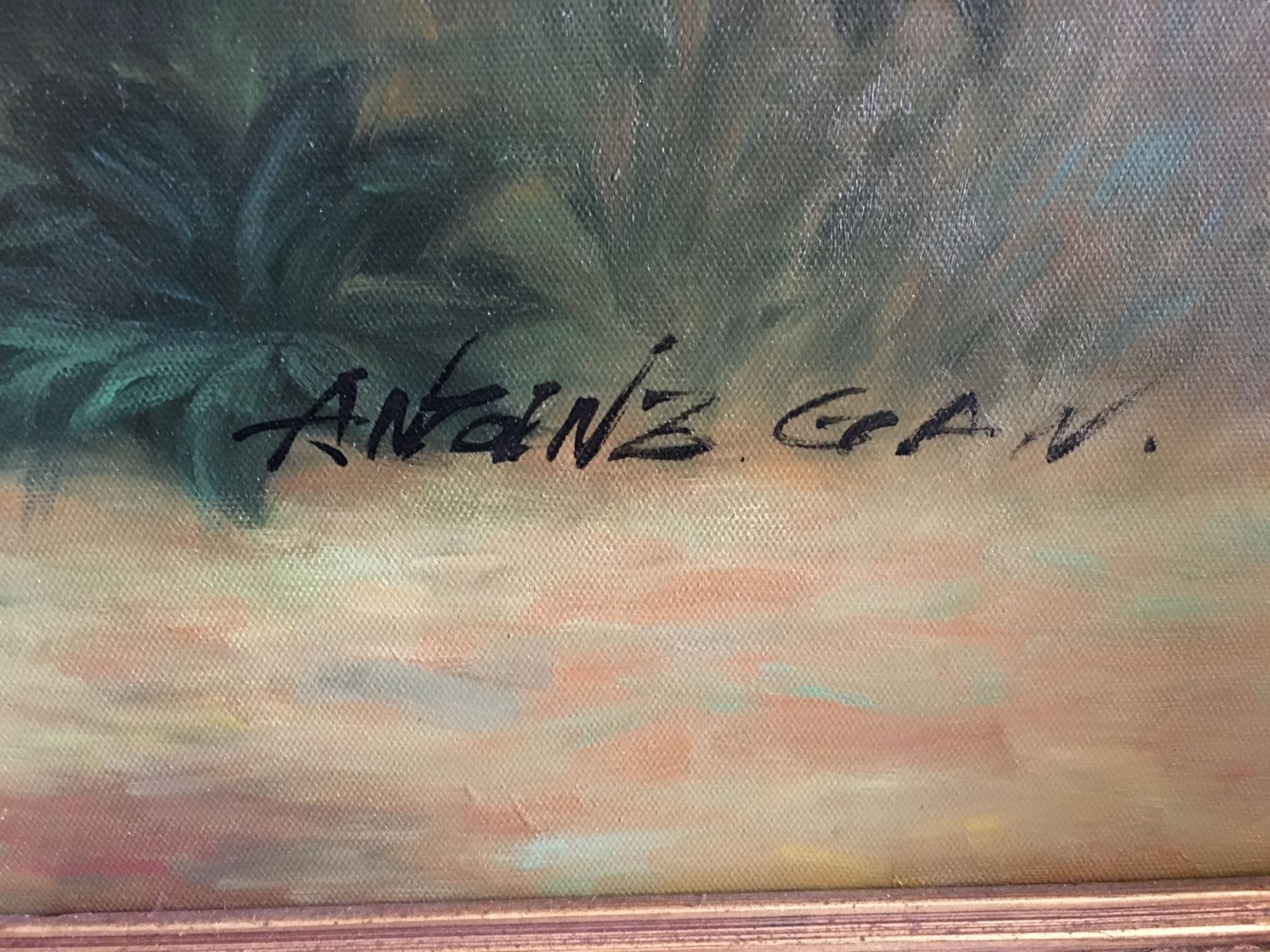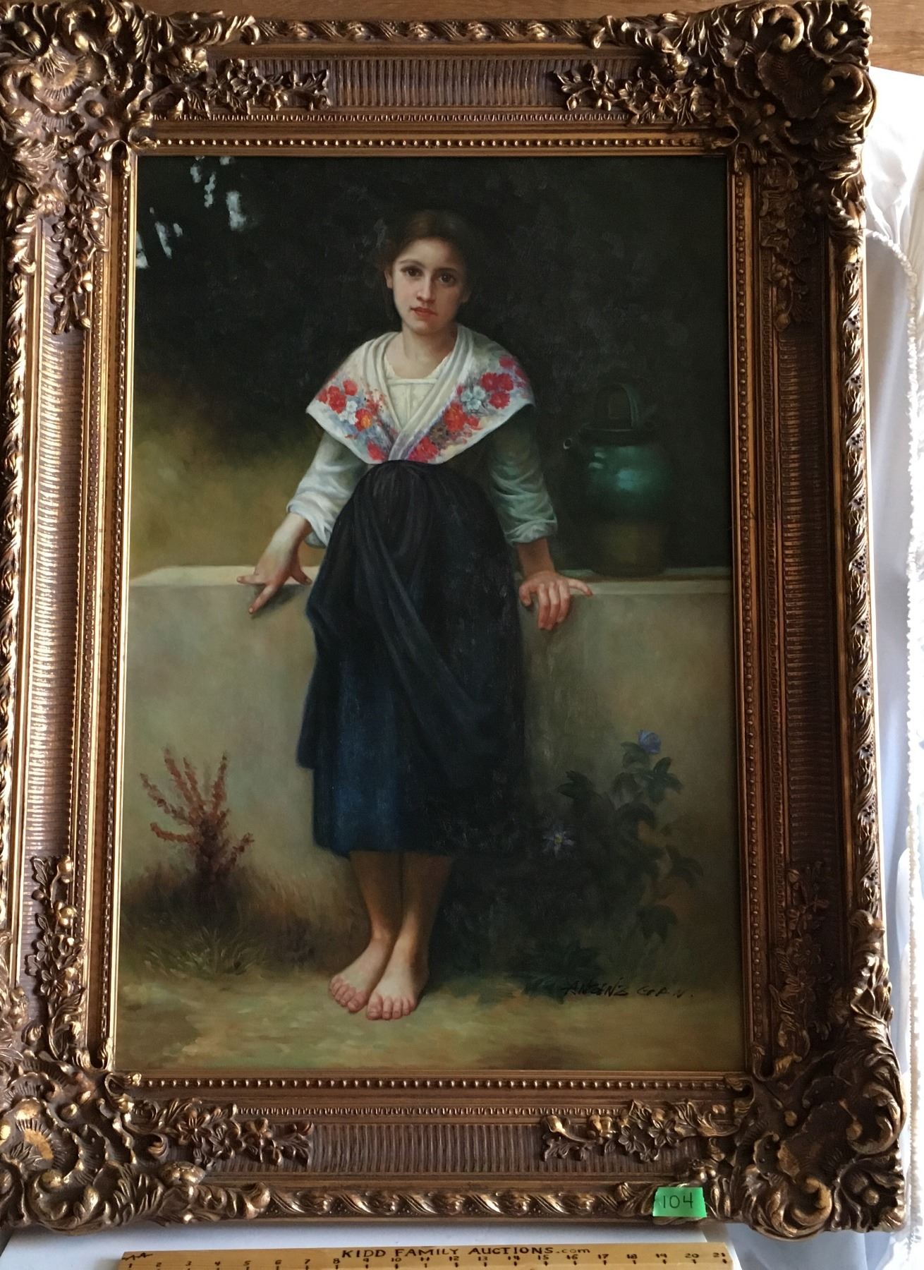 OIL ON CANVAS, GIRL IN BLUE SKIRT SIGNED 'ANTOINE GRAN'? GILT FRAME, 24X36