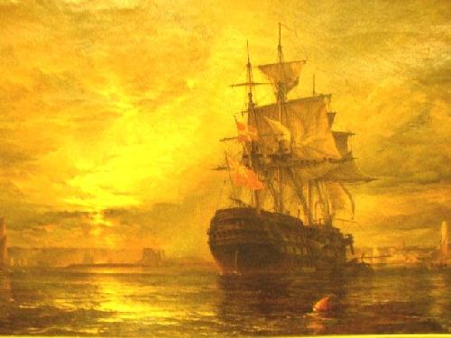 OIL ON CANVAS, HENRY DAWSON; (British 1811-1878), signed and dated, lr, "H Dawson 1876" depicting the man-o-war "Goliath" laying in supplies, 31 1/2"h x 4'w