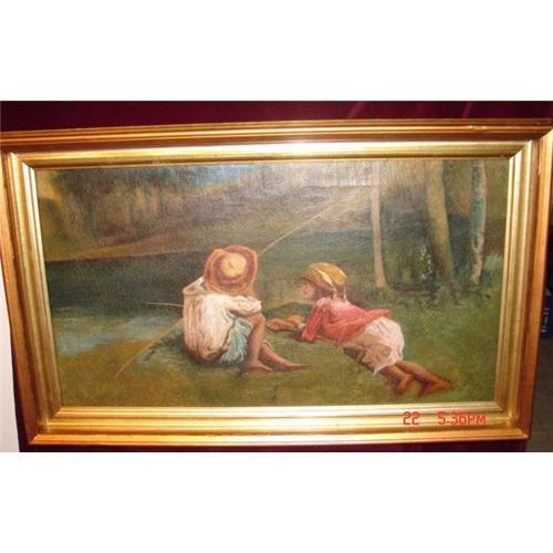 <tr><td>Title:OIL ON CANVAS OF BOY AND GIRL FISHING</td></tr>
