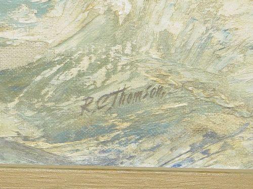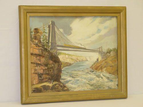 OIL ON CANVAS OF RAILROAD BRIDGE OVER NIAGARA FALLS SIGNED R.C. THOMSON ON LOWER RIGHT (20 1/2" X 25") - MINOR LOSSES