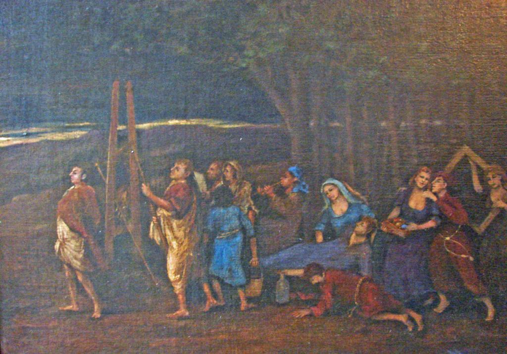Oil on Canvas- Procession. 19th Century stretcher. 24 1/2in x 32in s.s., in 19th Century frame 33 1/2in x 41in.