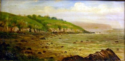 OIL ON CANVAS; Landscape by C. Lambert, on reverse "near Saltburn NE Coast" paper label "original C. Lambert", 12" x 23-3/4", some drying