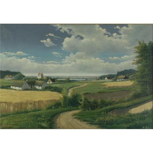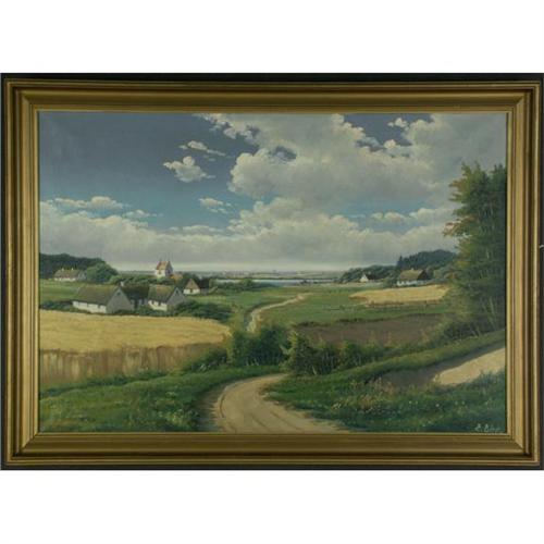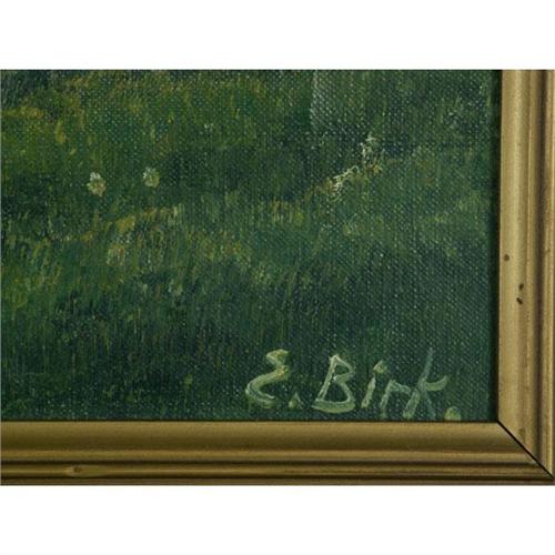 OIL ON CANVAS 26.5'' x 38.25'', E. Birk. A European Village Landscape. Signed lower right. Placed in a period goldtone frame. 31'' x 42.5'' Framed.