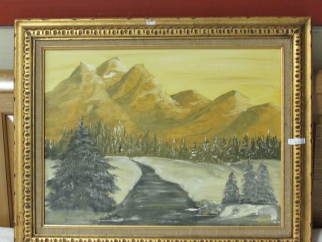 OIL PAINTING GOLD GUILDED FRAME - MOUNTAIN