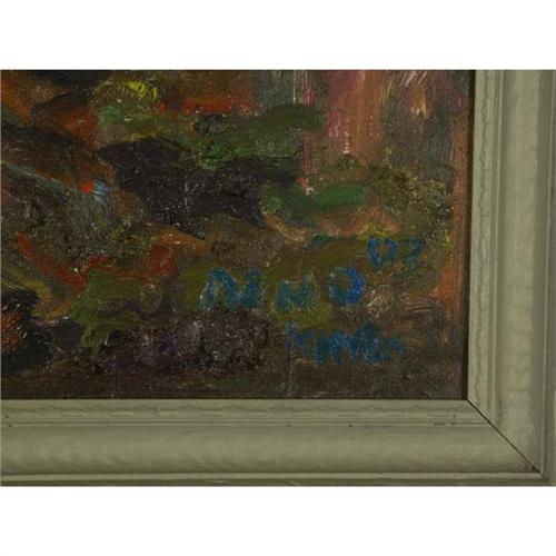 OIL ON BOARD, Joe Reno (1943-), WA. ''Kinky Kinky Cat''. Signed and dated ''03'' lower right. Artist, date and title info. on the verso. Placed in a beige carved wood frame, frame as seen. More info. at the front desk. 20.25'' x 24.25''/ 23.25'' x 28'' framed.