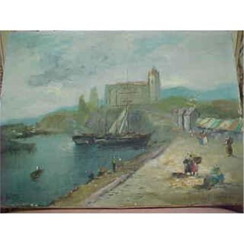 <tr><td>Title:OIL PAINTING OF BOATS IN PORT</td></tr>