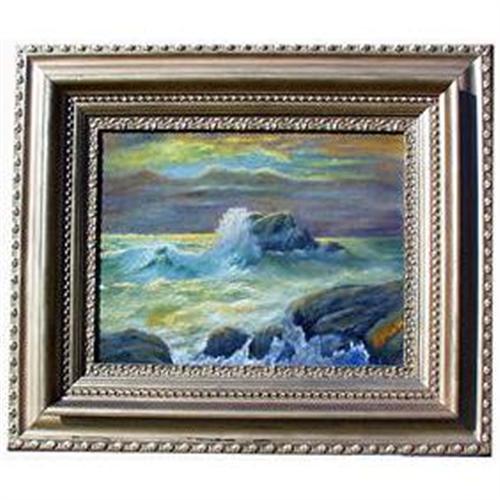 Oil painting on canvas depicting stormy seaside scene. Well executed, signed V. Verecondo? In lower right.. Ornate gold frame, very good condition. Overall dimension is 26-1/4 x 22-1/2 inches. Age and Artist unknown, but we believe it is from late 19th Century Victorian era.