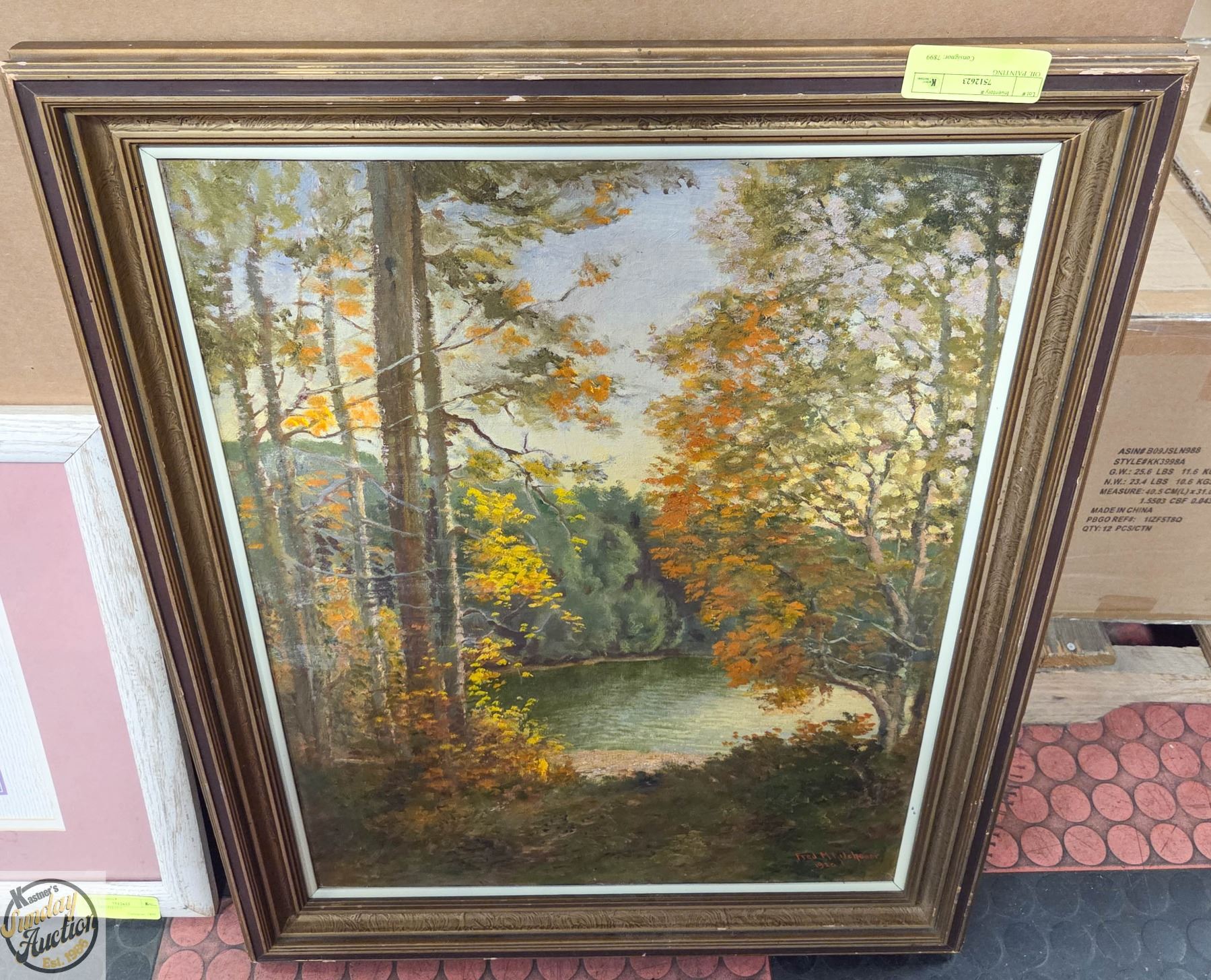 PAINTING OF A LAKE FALL COLOURS, FRED KITCHENER IS ARTIST 1920 29" X 23" **ALL ITEMS MUST BE REMOVED BY 5PM SATURDAY, JUNE 14TH 2025. ALL REMAINING ITEMS WILL BE SUBJECT TO A $6.00 PER DAY STORAGE CHARGE. ANY ITEMS REMAINING AFTER MONDAY, JUNE 30TH, 2025 WILL BE CONSIDERED FORFEITED. NO REFUNDS WILL BE ISSUED FOR FORFEITED ITEMS. TO SCHEDULE A PICK UP APPOINTMENT CLICK HERE