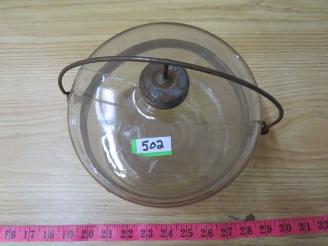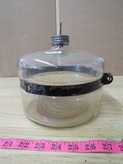 OIL STOVE GLASS CONTAINER, 2 BRASS PUMPS AND WICK
