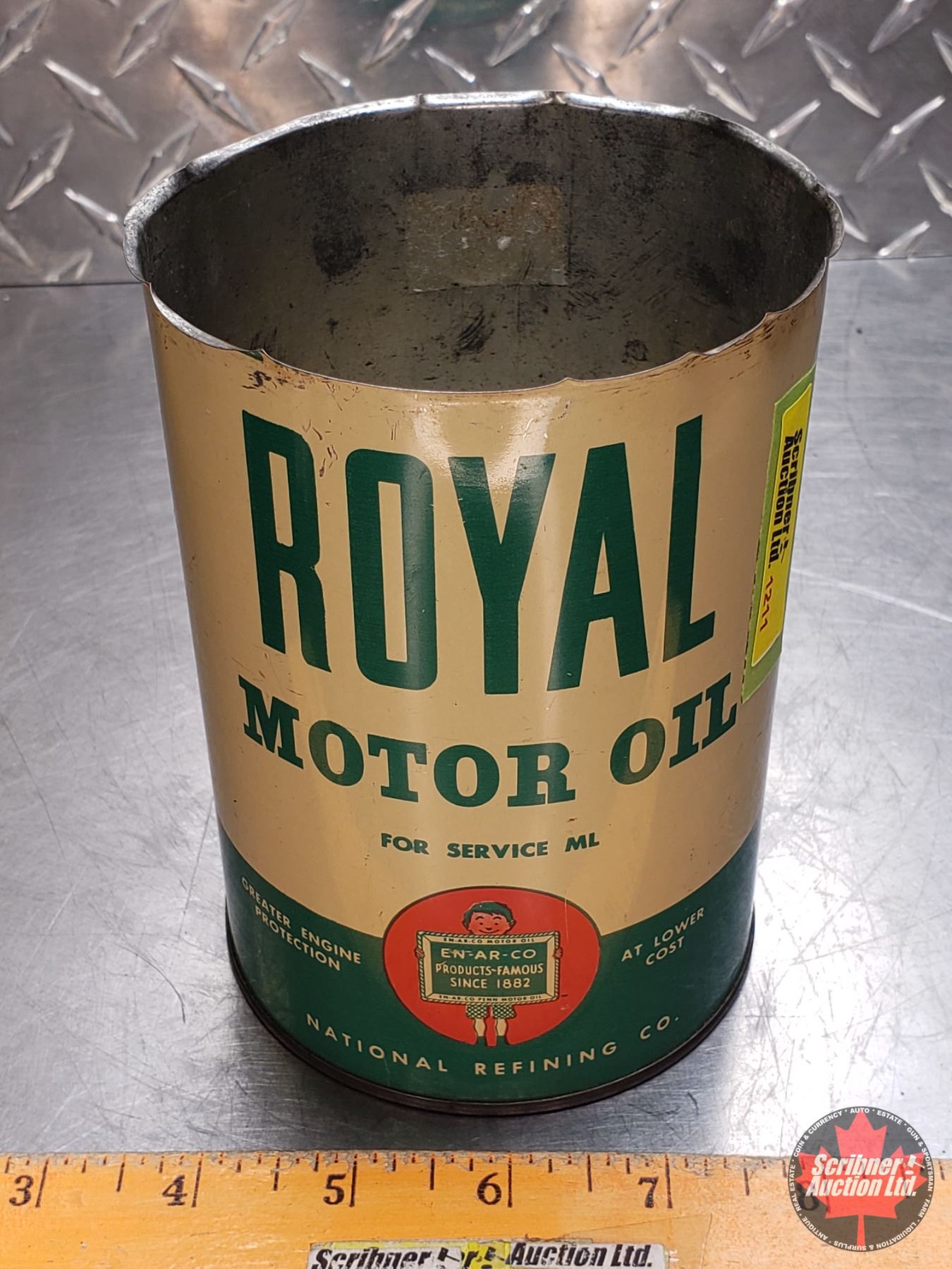 OIL TIN: EN-AR-CO ROYAL MOTOR OIL (5-1/2"H x 4"Dia) (SEE PICS!)