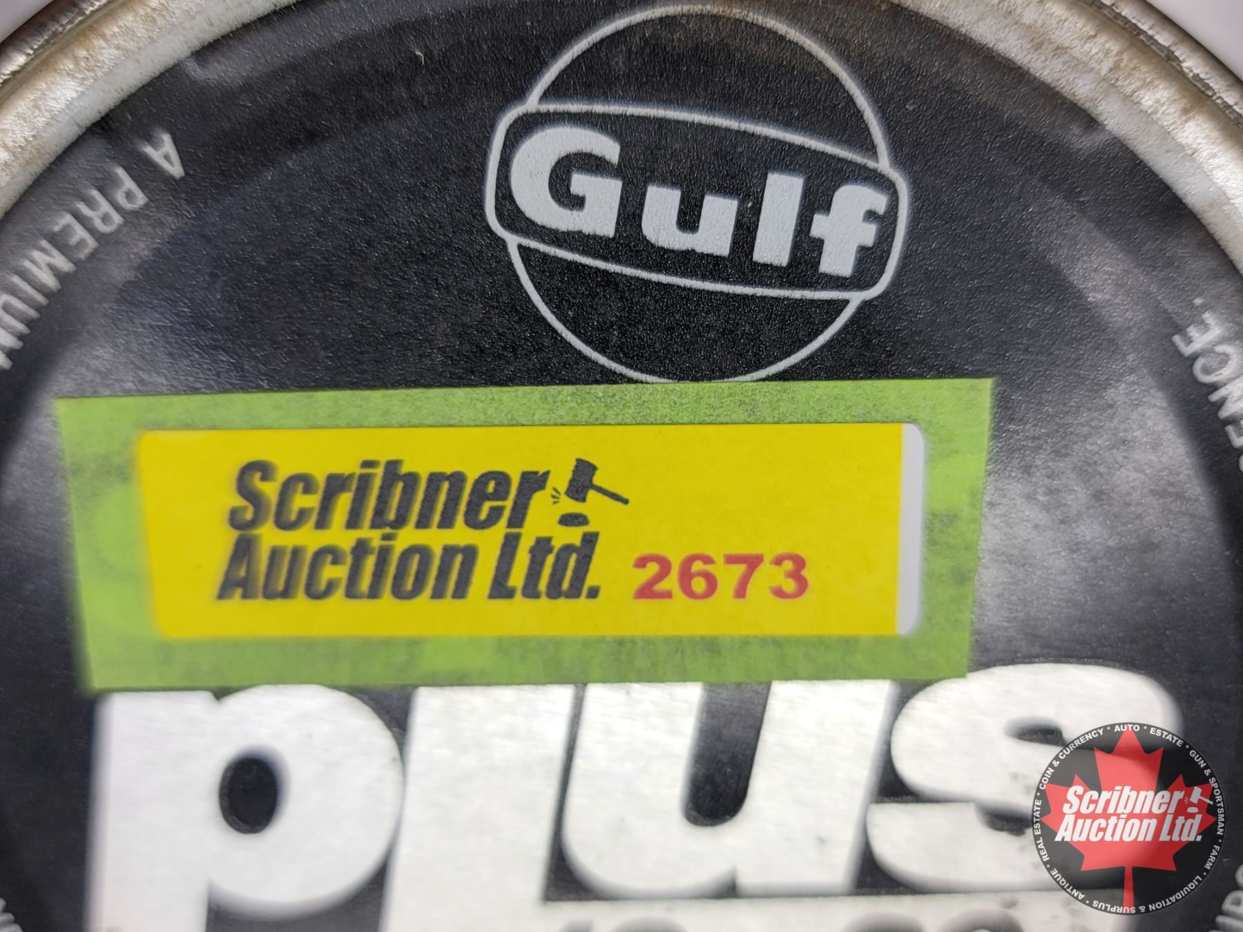 OIL TIN : GULF Super Plus Motor Oil (Cardboard) (6"H x 4"Dia) (SEE PICS!)