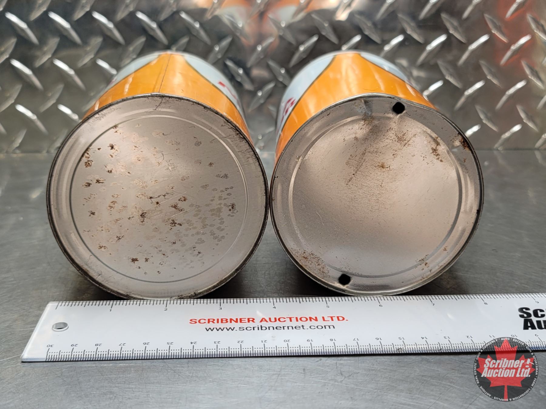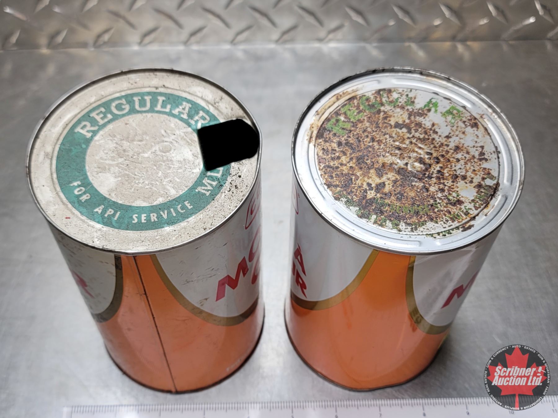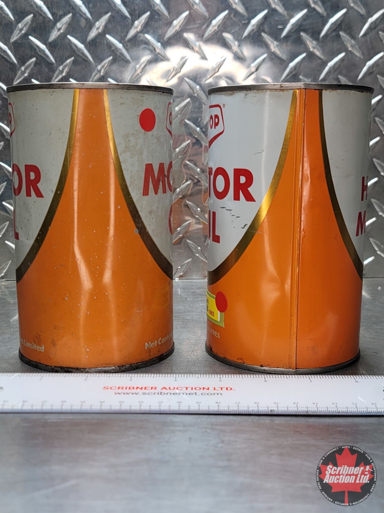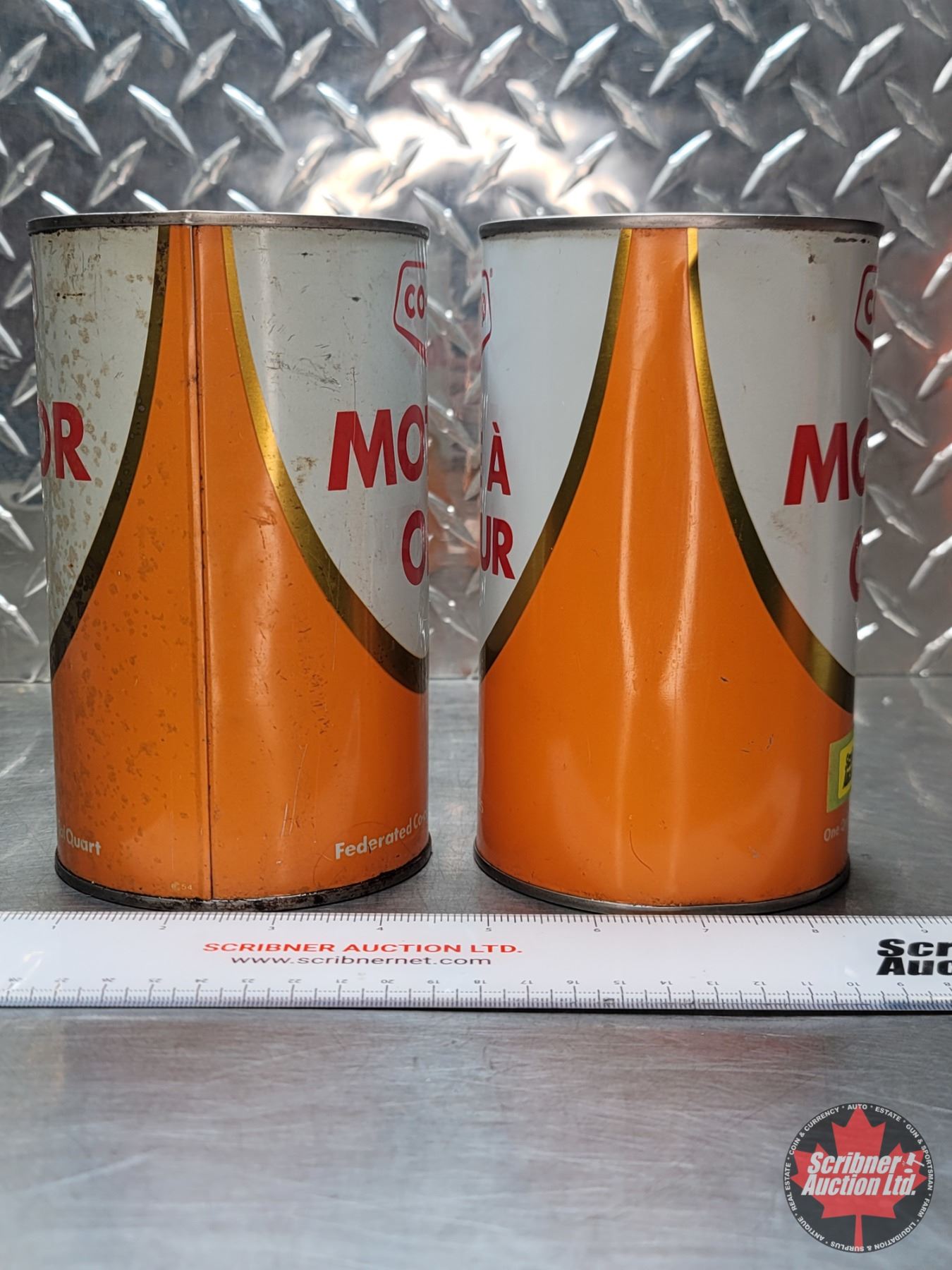 OIL TINS (2) : CO-OP MOTOR OIL (6-1/2"H x 4"Dia) (SEE PICS!)