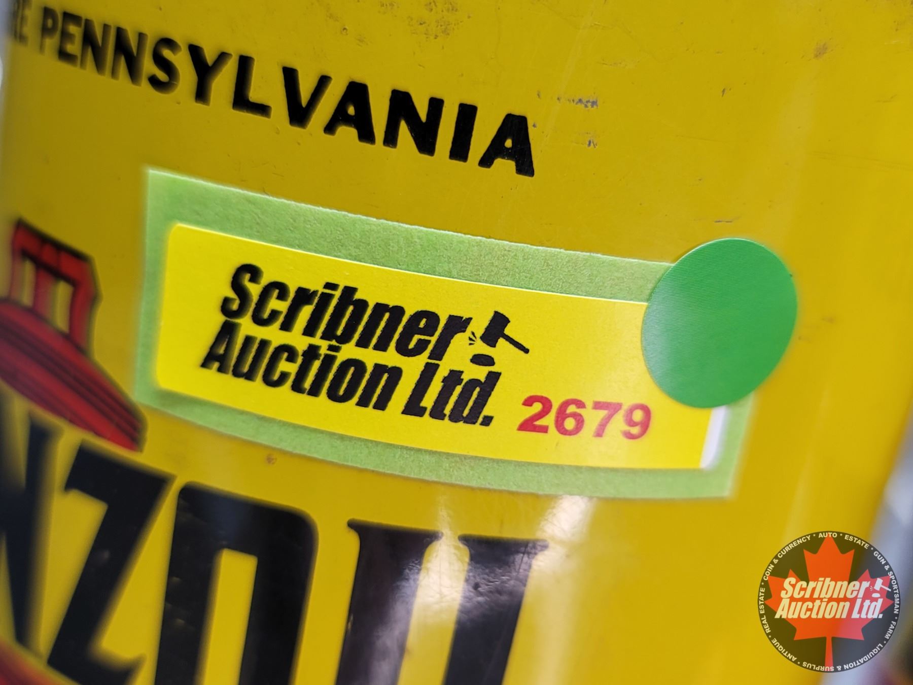 OIL TINS (2) : PENNZOIL Motor Oil (6-1/2"H x 4"Dia) (SEE PICS!)