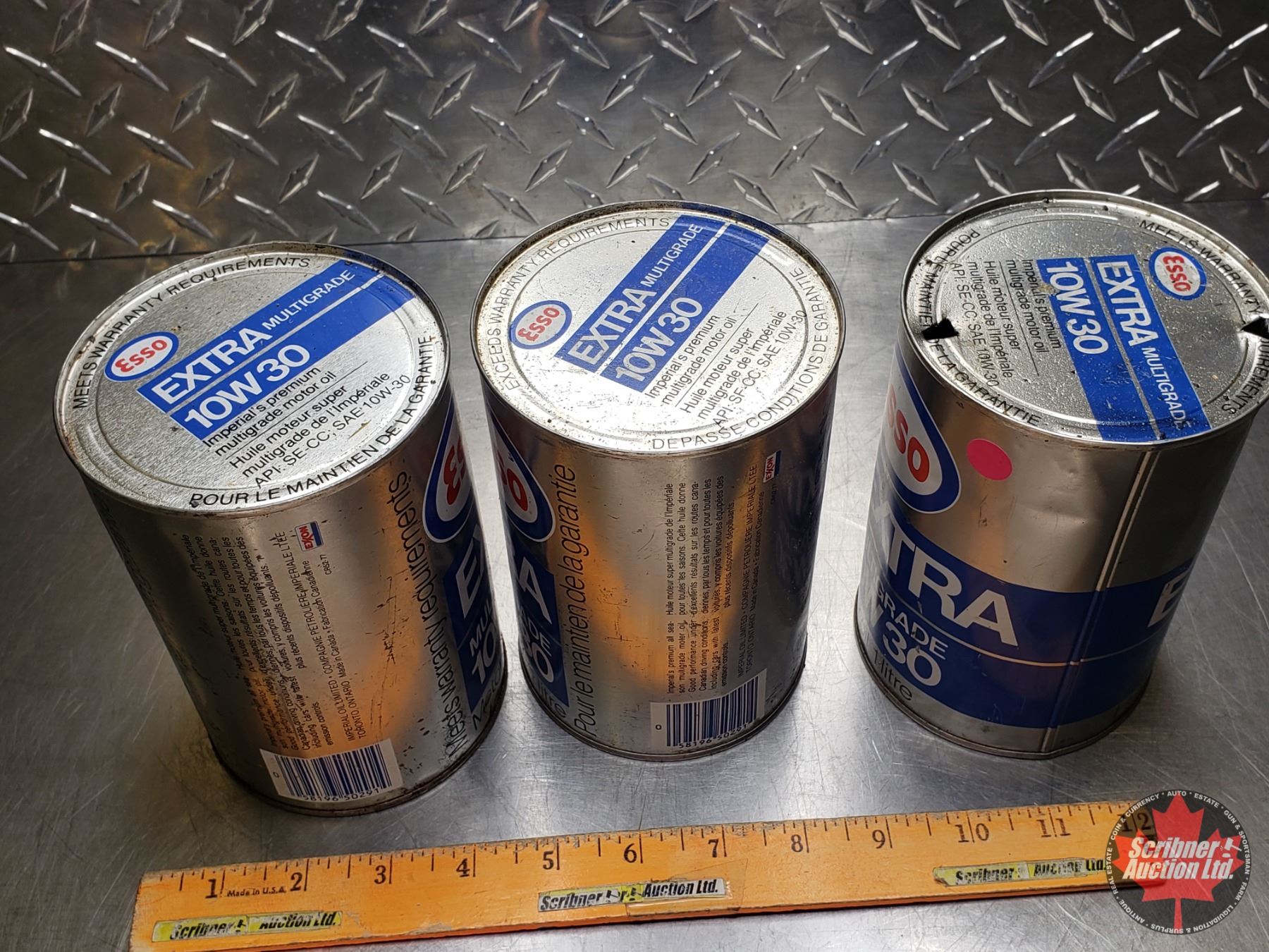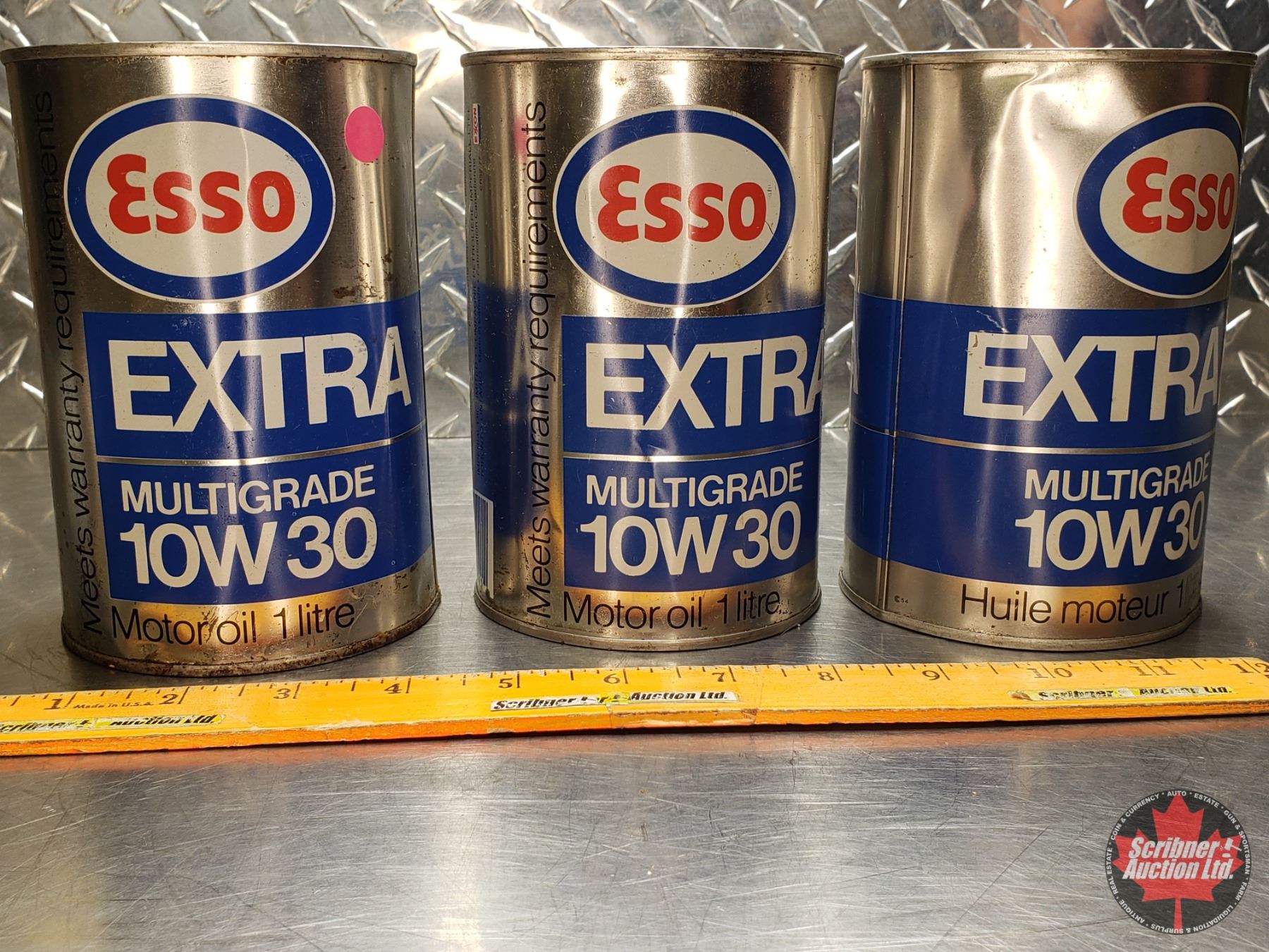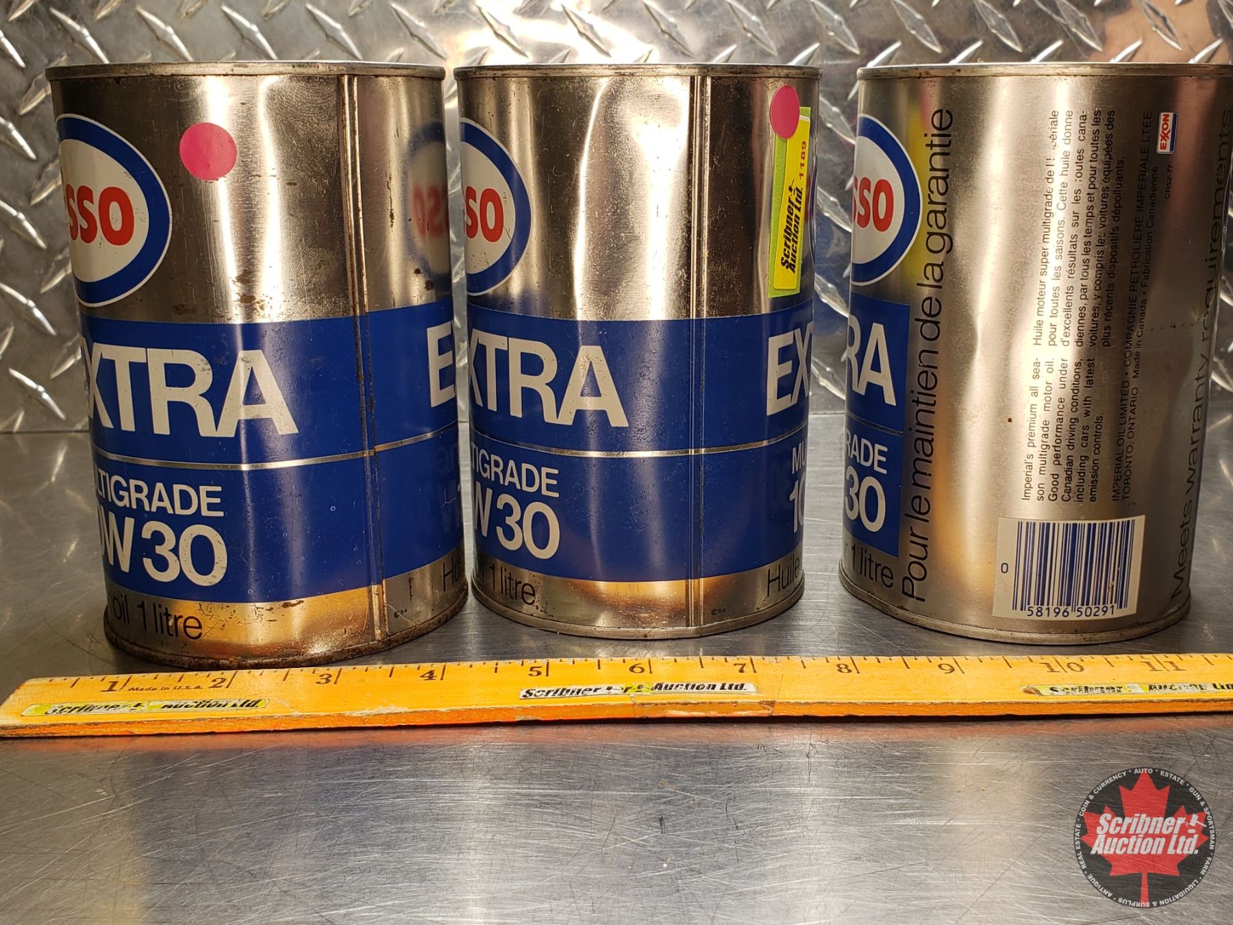 OIL TINS (3) ESSO EXTRA MULTIGRADE 10W30 (All 6"H x 4"Dia) (SEE PICS!)
