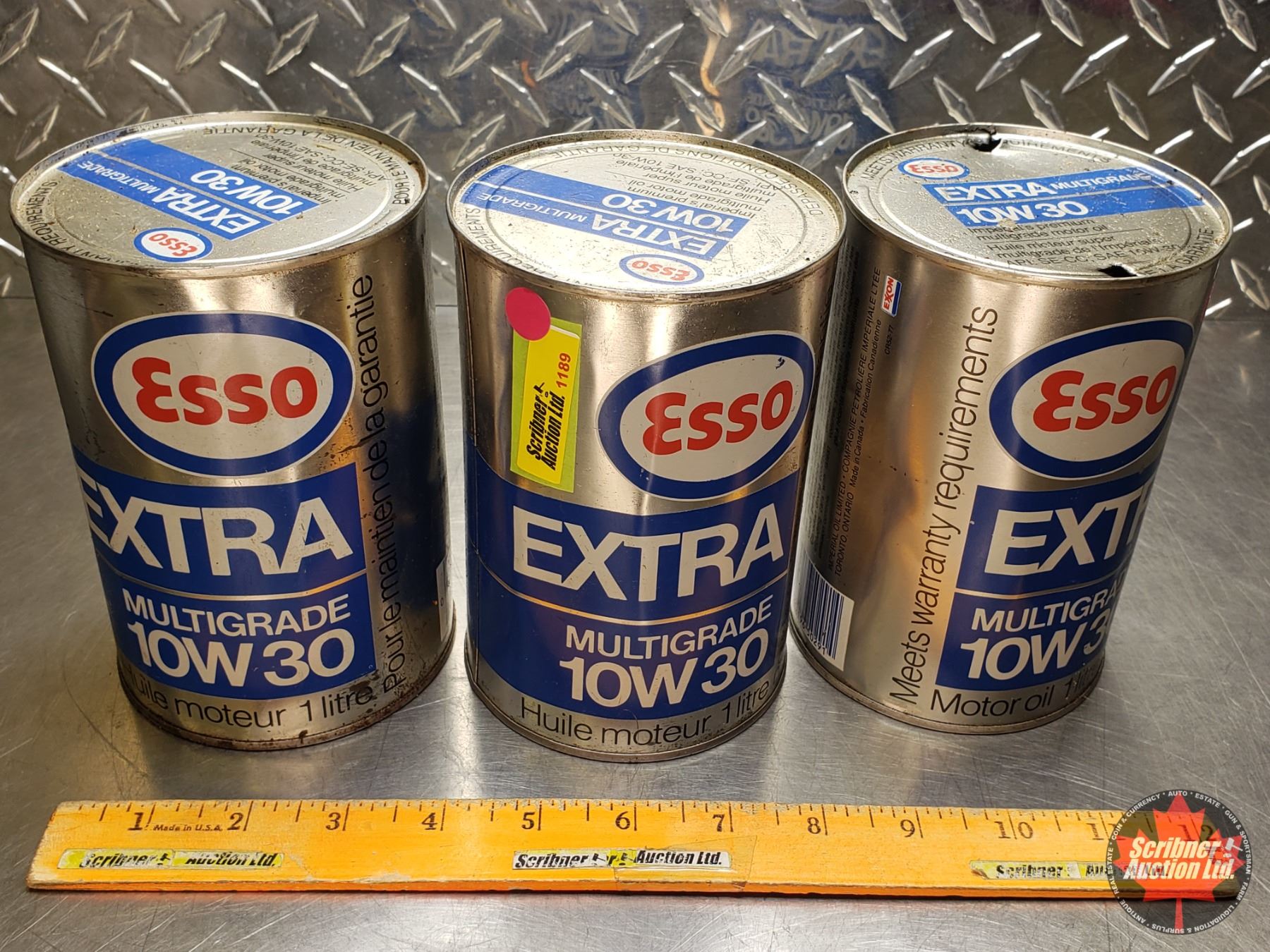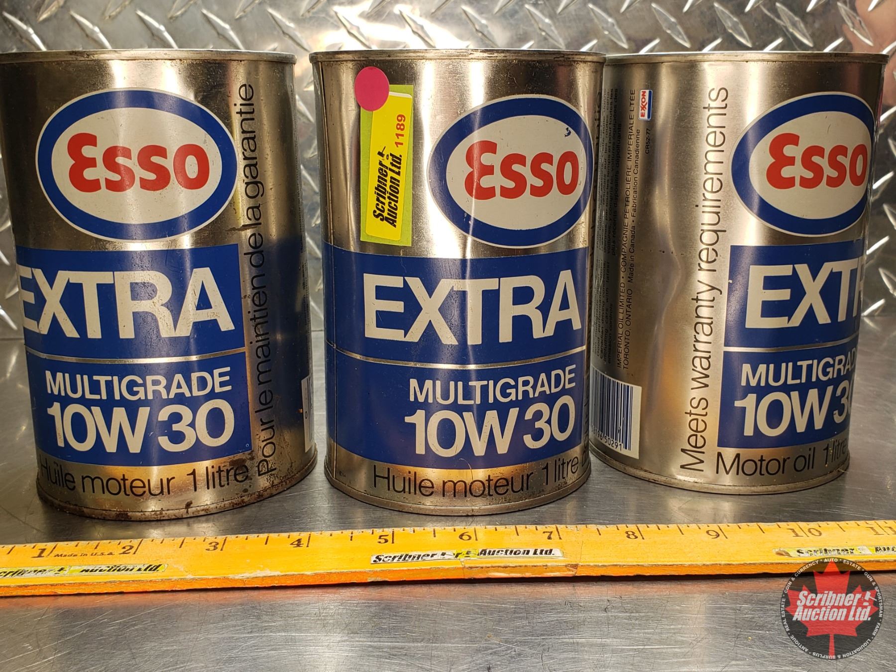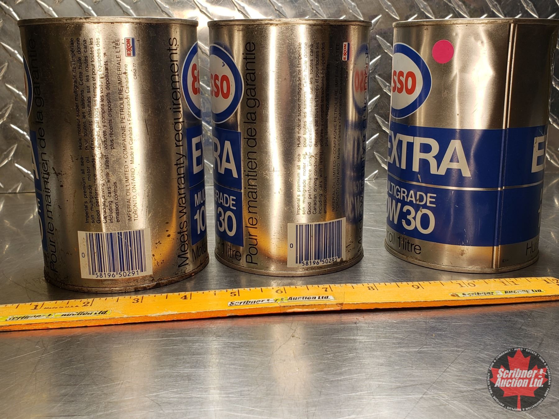 OIL TINS (3) ESSO EXTRA MULTIGRADE 10W30 (All 6"H x 4"Dia) (SEE PICS!)