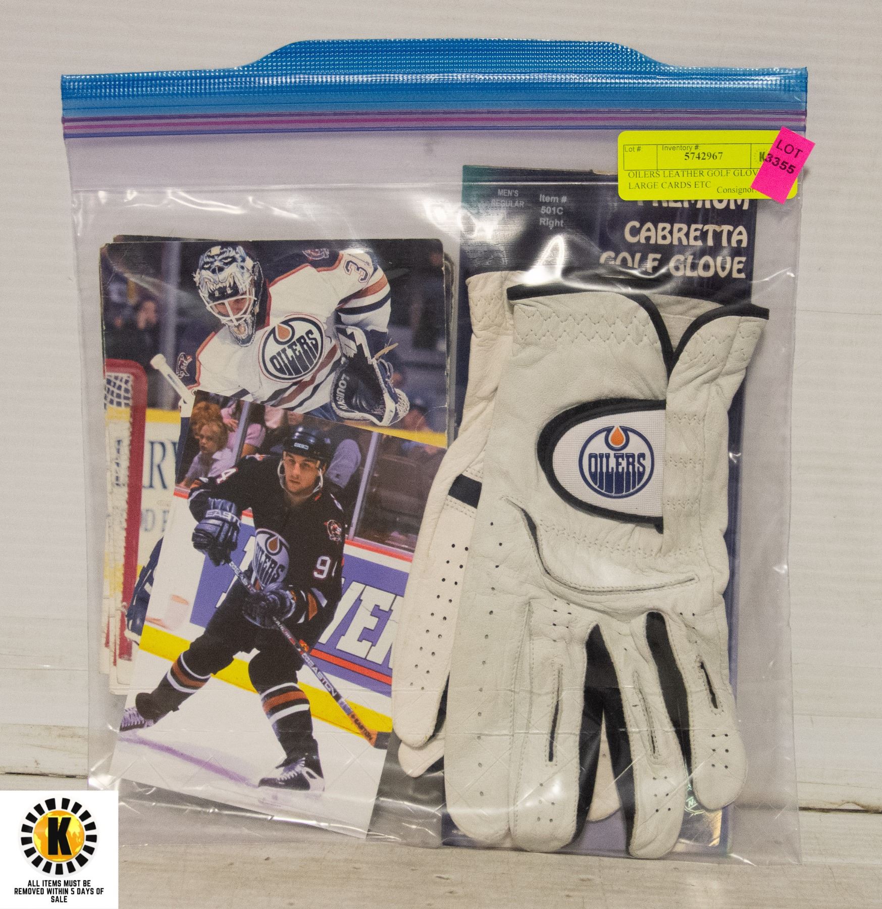OILERS LEATHER GOLF GLOVES , LARGE CARDS ETC