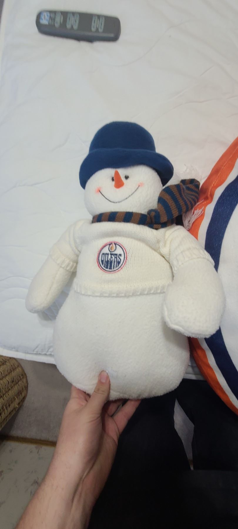OILERS THEMED FLEECE BLANKET/CUSHION & SNOWMAN (SET)