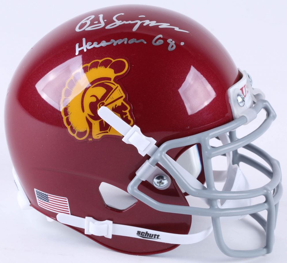 Schutt USC Trojans mini-helmet has been hand-signed and inscribed in silver paint pen by OJ Simpson (HOF).