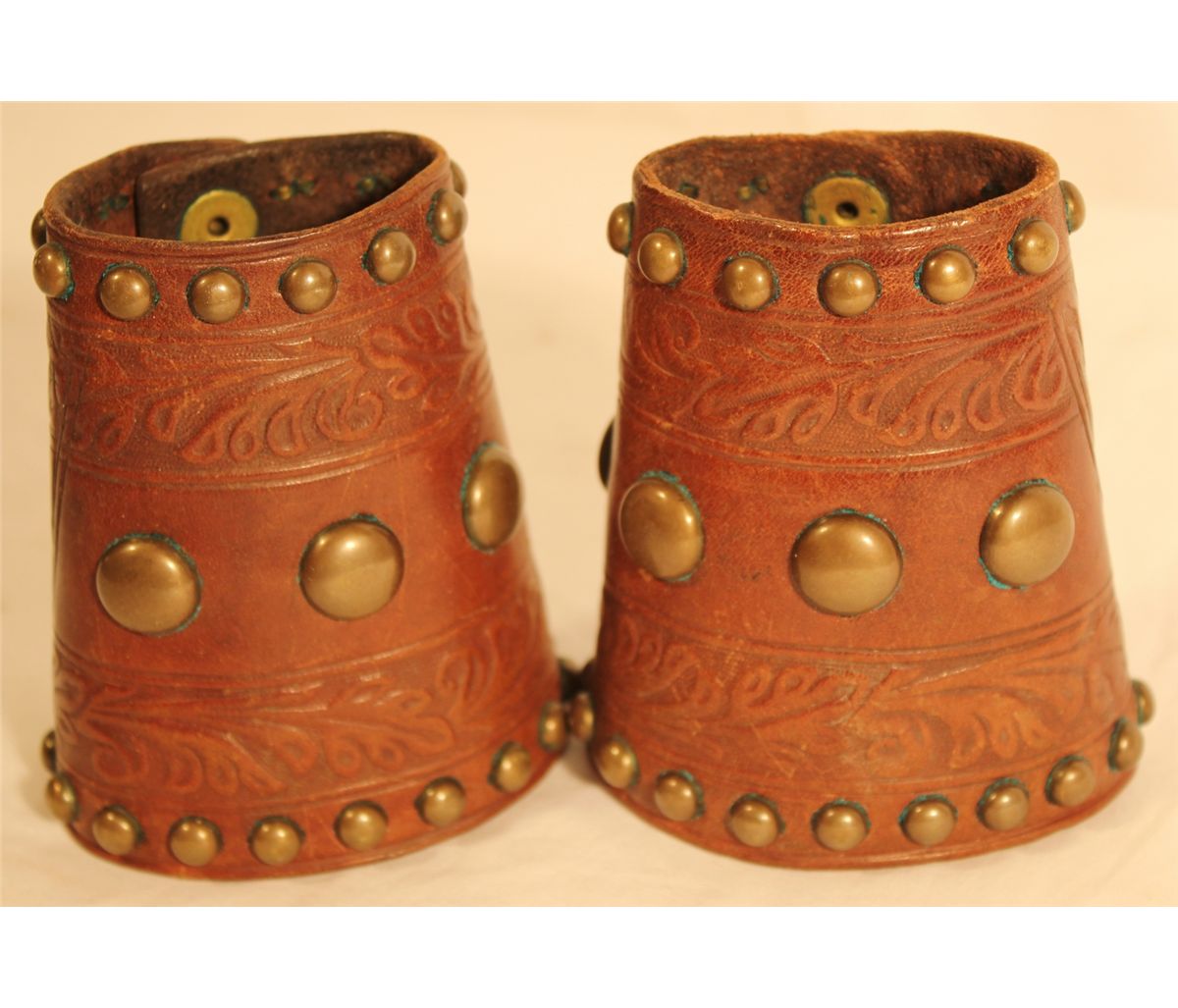 OJ Snyder Denver CO Kids Cuffs; in near new condition, being fully tooled and attractively studded, and great marks on the snaps.
