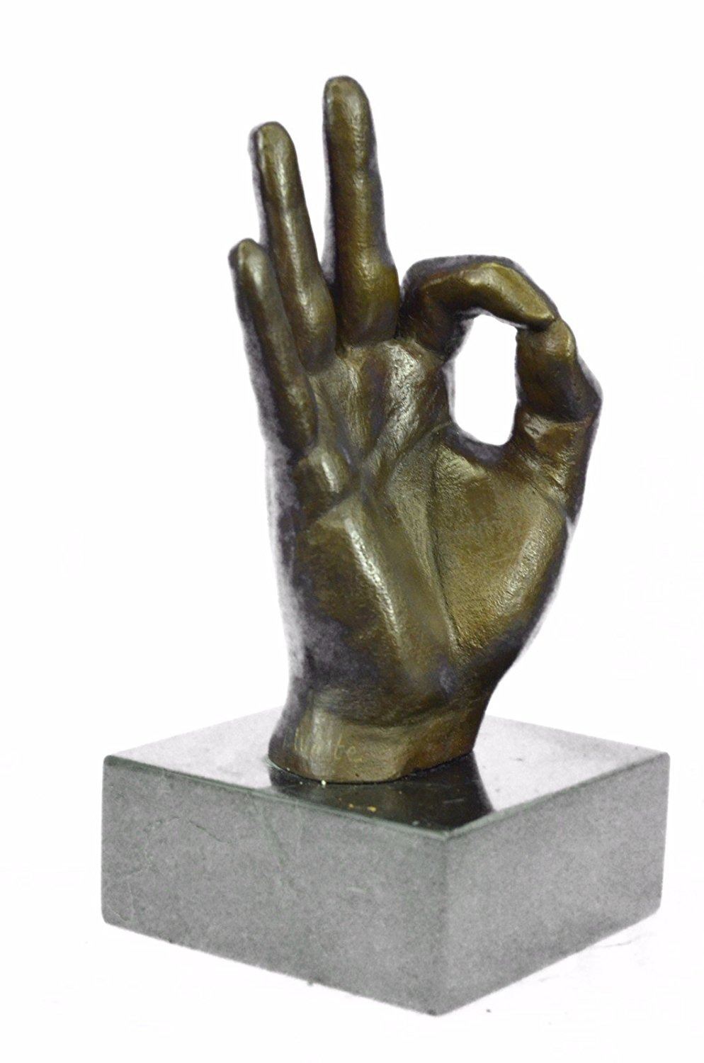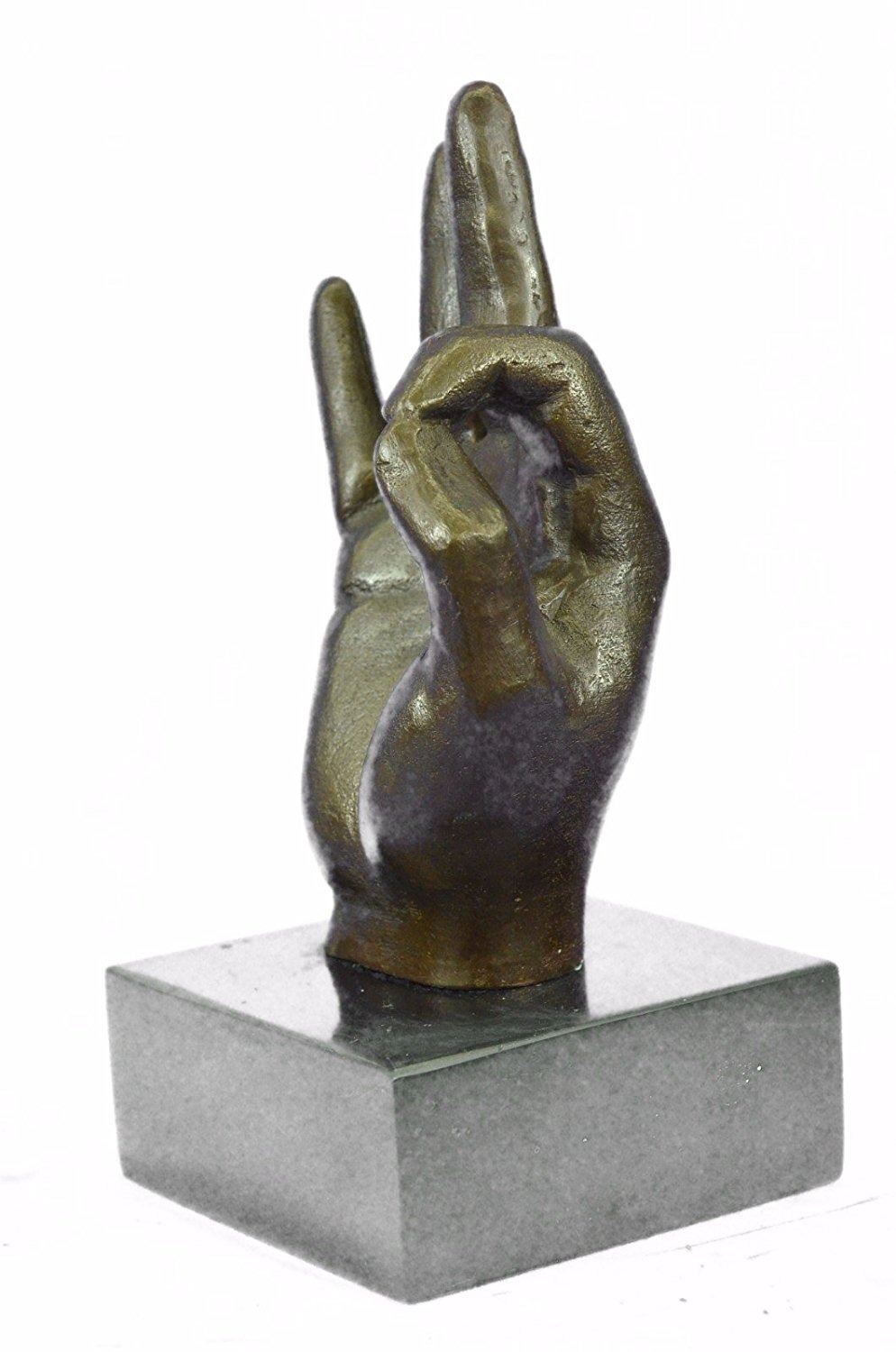 Gestures are the most direct body signals given while interacting with some one. These include the movement of the head a tilt or nod, any noticeable shoulder movement a shrug or lean in, hand movements, placing of feet. Note if there are any common gestures that the person tends to demonstrate. Look past the obvious! Notice their posture, is one leg always crossed over another, do they tend to look a certain direction more, etc. All of this can help you develop a baseline and, more importantly, identify when they stray from that baseline. This abstract Hand Gesture is Cast Using The Lost Wax Method. 100% Handmade Bronze And Carefully Detailed This Is A Priceless Collector Edition Piece Of Work. Bronze Dimensions with Marble Base: Height 10 X Width 4 inches. Weight: 8 LBS. Inventory: 60XN16904406