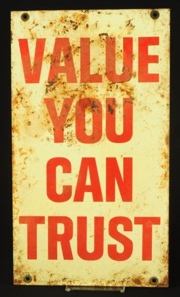 Back side of sign reads "Value You Can Trust ". Sign Measures 28" x 16".