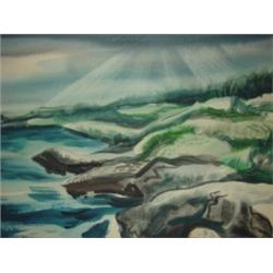Okerbloom, Charles I. (1944) watercolor painting of seascape. Signed in lower left. 22.25" x 15.75" unframed.