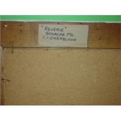 Okerbloom, Jr., C.I. watercolor painting titled "Reverie". Untitled. 41" x 35" framed. Signed on reverse and lower left "C.I. Okerbloom, Jr." Marked "Reverie" on reverse.