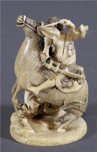 OKOMONO HORSE AND RIDER 3 3/4" high, c