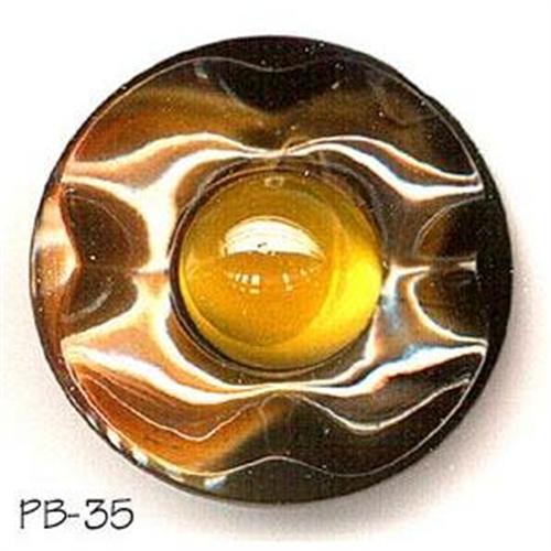 </font></strong>This button is part of our museum quality button collection. Many collectors who visited our shop had a chance to view all of them, and although interested, they were not for sale at the time. Well, after 9 years of these buttons being on display, we decided to part with them. Since we don't collect buttons, we're hoping that each button will find a new home, where it will be appreciated at least as much as it was here.... Originally these buttons were part of HUGE 10 000 pc lot, all on original manufacturers sample cards, with each button being different. This lot was sold years ago to a dealer/collector. We kept these buttons because most of them fell off the cards, due to the age and fragility of the paper/cards. We'll be offering these buttons on Ebay over the next few weeks, so if you are one of the people interested in the past, here is your chance. Needless to say - you are bidding on extremely scarce, MUSEUM QUALITY button. Description: Beautiful 2-piece antique button with round, high dome shaped yellow moonstone color glass. Outer piece is made of slightly translucent brown "Mother of Pearl color" glass, which is 1-1/4 inches in diameter (Large) and 15mm thick over the centerpiece. 4 way brass box shank, Bohemia/Czechoslovakia circa 1890-1920. Third photo shows side view of this button type. Multiple purchase of buttons will save on shipping - we'll combine shipping cost</font>