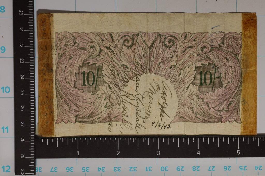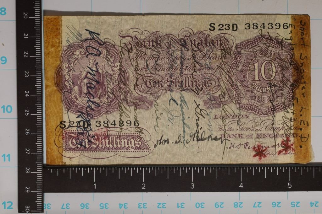 HAS SIGNATURES ON THE OBVERSE AND REVERSE WITH OLD TAPE ON THE EDGES