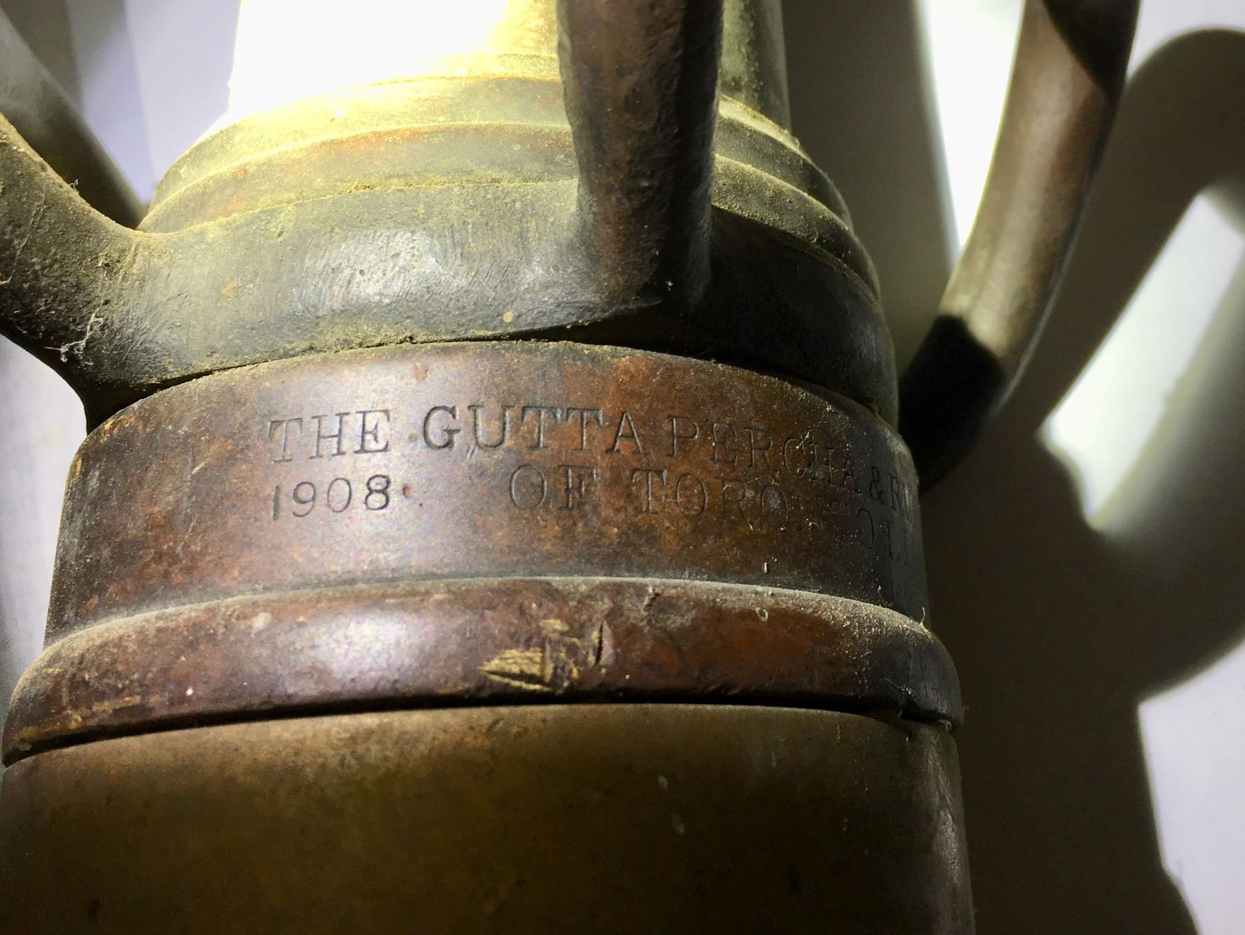 OLD BRASS FIRE NOZZLE, 31.5 " THE GUTTA PERCHA & RUBBER MFG CO TORONTO, 1908
