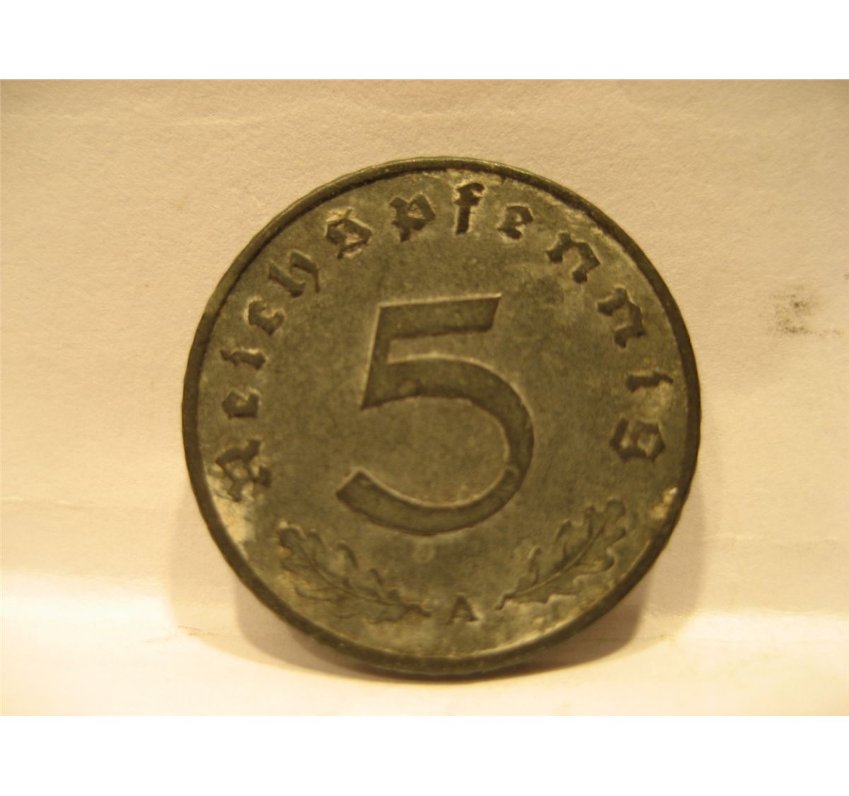 (1) OLD COIN NAZI GERMANY 5 1941-A SWASTIKA WORLD WAR II