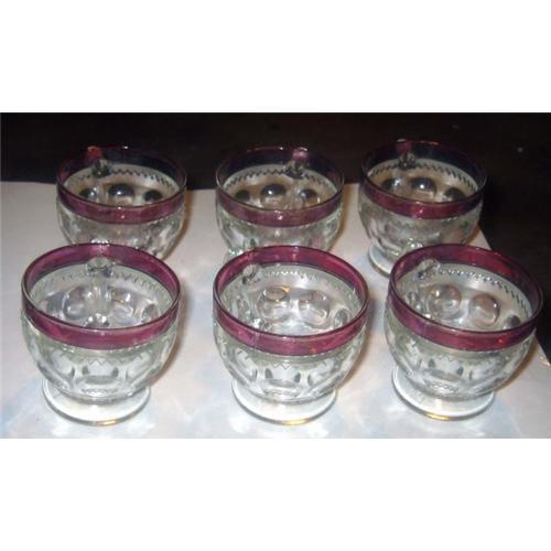 Excellent set of six Kings Crown Cranberry Flash Thumbprint glass punch glasses, approx 3x3, great condition