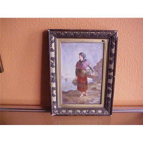 ANTIQUE EUROPEAN, COULD BE FRENCH, PORCELAIN PAINTED SIGNED BY E. POITEVIN, REPRESENTING A WOMEN (COULD BE A FISHER'S WIFE) LOOKING AT THE SEA, FRAMED ON A VERY DETAIL METAL WORK, THIS COULD HAVE BEEN A TILE THAT HAS FRAMED, DON'T KNOW NOTHING ABOUT THE PAINTER, IF YOU MIGTH HAVE SAME INFORMATION, PLEASE E-MAIL IT TO ME, SEE DETAIL PHOTOS.