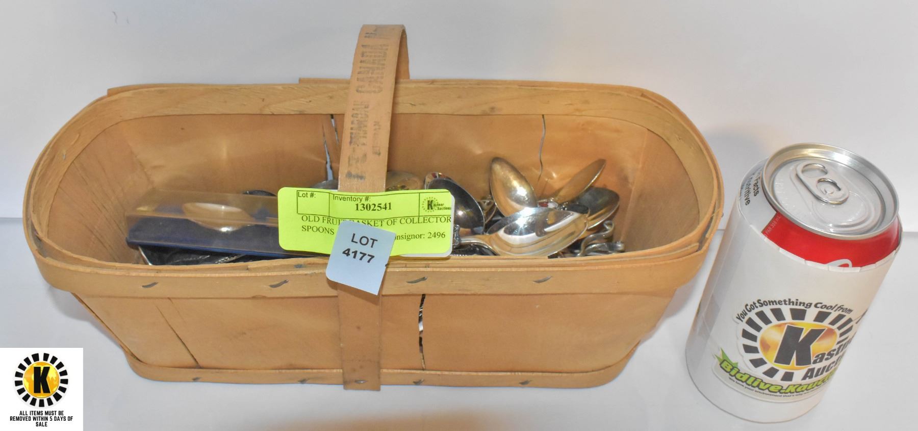 OLD FRUIT BASKET OF COLLECTOR SPOONS
