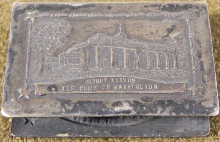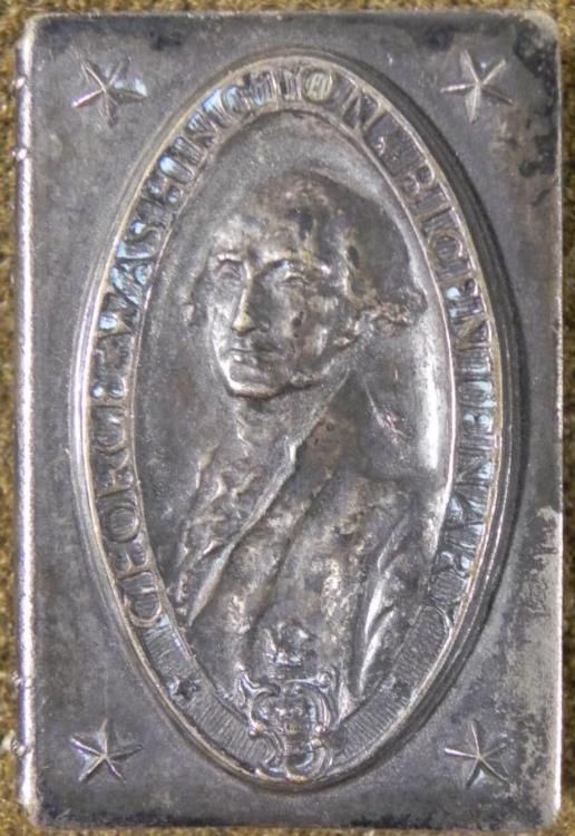 OLD GEORGE WASHINGTON MATCH SAFE-W/MT VERNON & WASHINGTON--1 3/4X1 1/4" * GREAT PIECE FOR WASHINGTON'S BICENTENARY--1737-1937 IS ON SPINE OF MATCH SAFE *