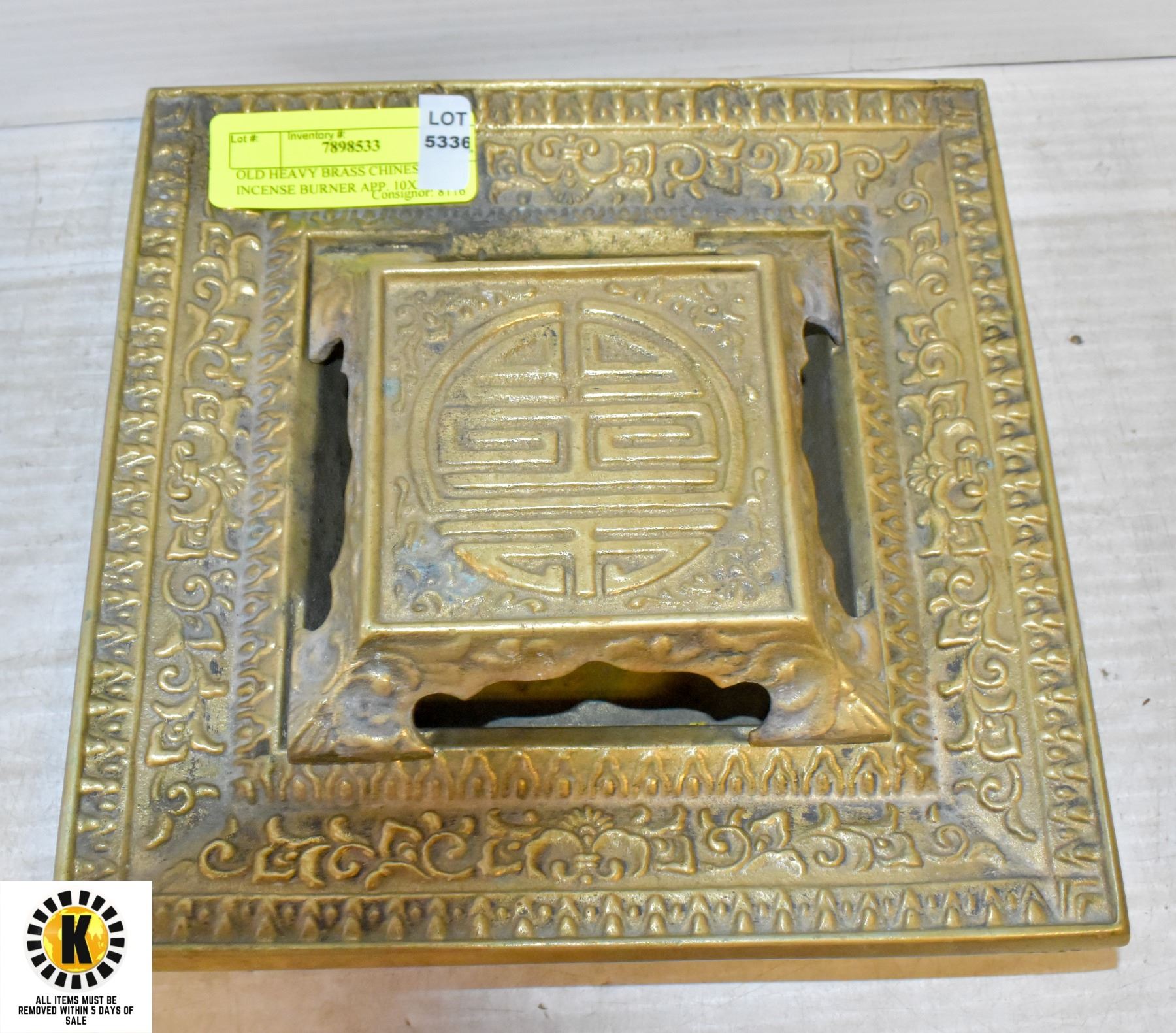 OLD HEAVY BRASS CHINESE INCENSE BURNER APP. 10X10
