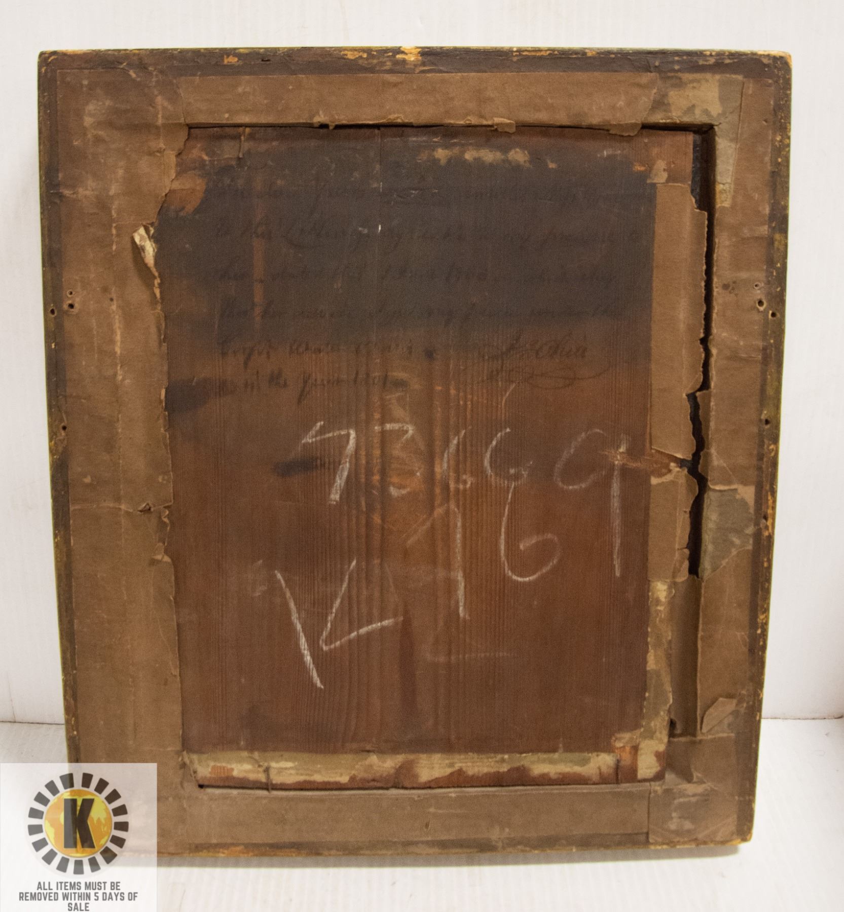 FRAMED OLD PICTURE FROM EARLY 1800S - PICTURE UNKNOWN - HISTORICAL WRITING ON BACKALL ITEMS MUST BE REMOVED WITHIN 5 DAYS OF SALE