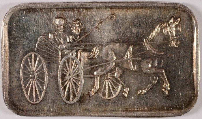 OLD HORSE AND BUGGY ONE OUNCE .999 SILVER BAR,