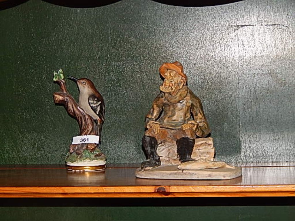 OLD MAN FIGURE AND HUMMING BIRD