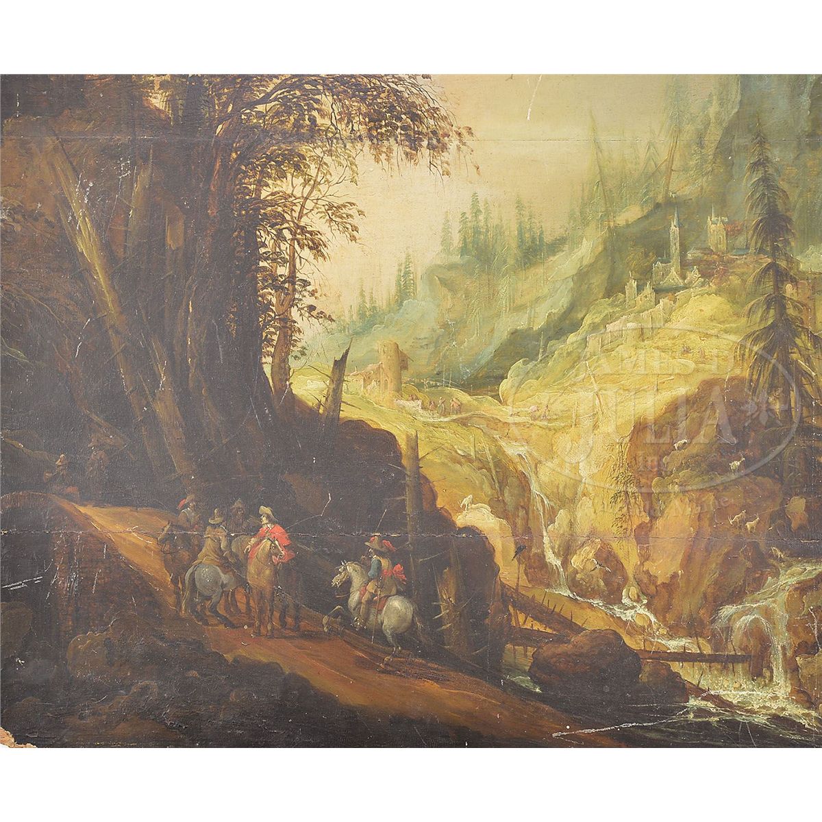 OLD MASTER (European, 18th Century) MEN ON HORSEBACK NEAR FALLS