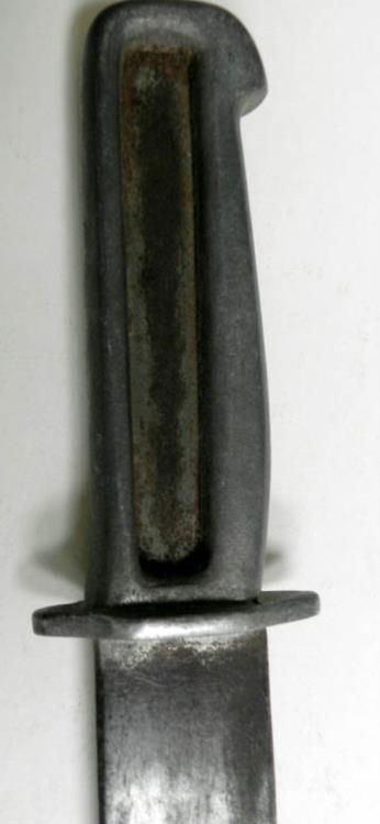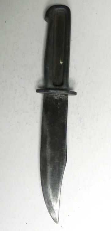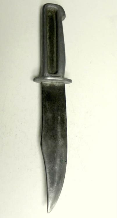 THIS IS AN OLD METAL CAST GRIP BOWIE KNIFE-INDENTED GRIP. INTERESTING KNIFE-SHARP BLADE--ONE PC CAST GRIP AND CROSSGUARD--NEEDS A CLEANUP