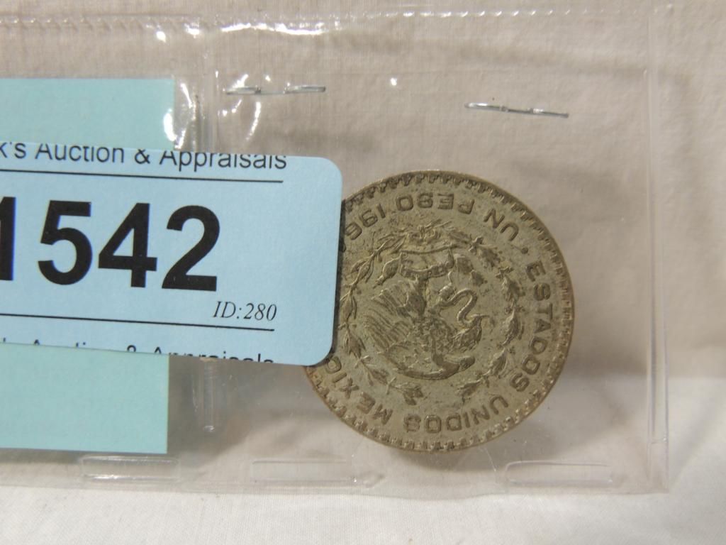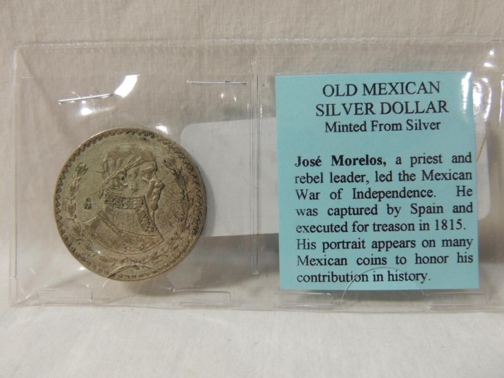 OLD MEXICAN SILVER DOLLAR MINTED FROM SILVER. AS SHOWN. SEE PHOTO FOR MROE DETAILS.