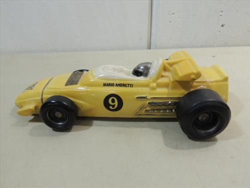 OLD MR BOSTON BOURBON CERAMIC DECANTER: MARIO ANDRETTI. CIRCA 1970S. LOTUS FORMULA 1 CAR. AS SHOWN. VIEW PICTURE FOR DETAIL.