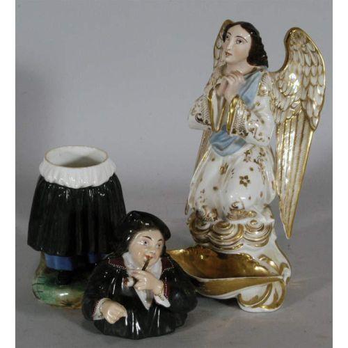 OLD PARIS ANGEL FIGURE together with a FIGURAL HUMIDOR, larger 12" high, both 19th century, CONDITION REPORT: rubs, break on humidor figure's pipe, piece missing in other hand? PACKING AND SHIPPING: We offer packing (double boxed in most cases) and shipping of this item within the Continental United States by USPS or UPS (our choice- boxes over 30lbs or oversized may be recalculated based on buyer's location), NOT INCLUDING INSURANCE (it will be added when we know the sales price) for $40