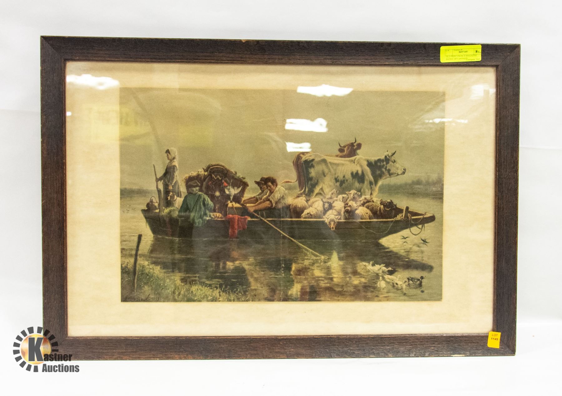 OAK FRAMED 20 X 30 INCHES OF BOAT WITH FARM ANIMALS AFTER A FLOOD (MINI NOAH'S ARK) **ALL ITEMS MUST BE REMOVED BY 5PM SATURDAY, AUGUST 5TH 2023. ALL REMAINING ITEMS WILL BE SUBJECT TO A $6.00 PER DAY STORAGE CHARGE. ANY ITEMS REMAINING AFTER MONDAY, AUGUST 21ST, 2023 WILL BE CONSIDERED FORFEITED. NO REFUNDS WILL BE ISSUED FOR FORFEITED ITEMS. TO SCHEDULE A PICK UP APPOINTMENT CLICK HERE