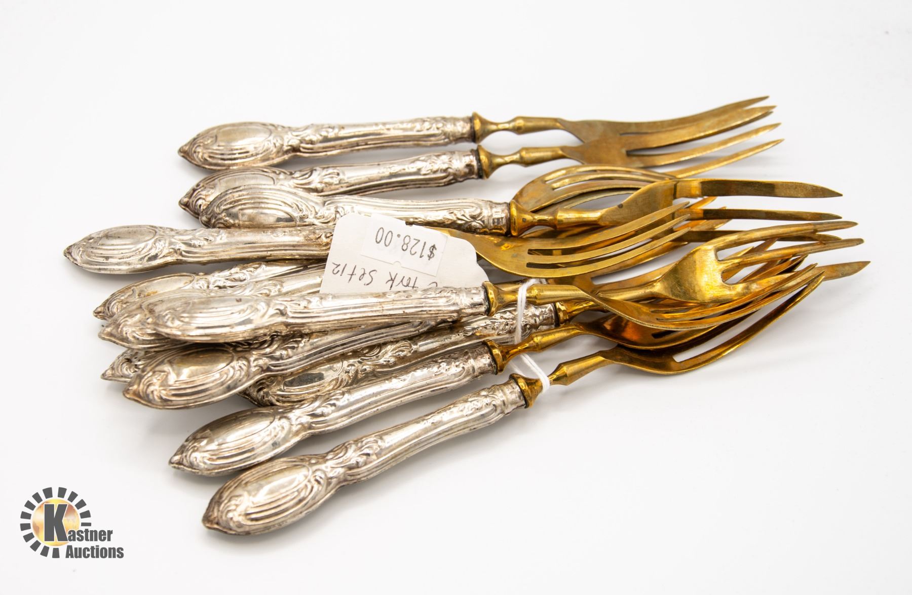 OLD SET OF 12 SILVER (NO STAMP) HANDLED PIE FORKS