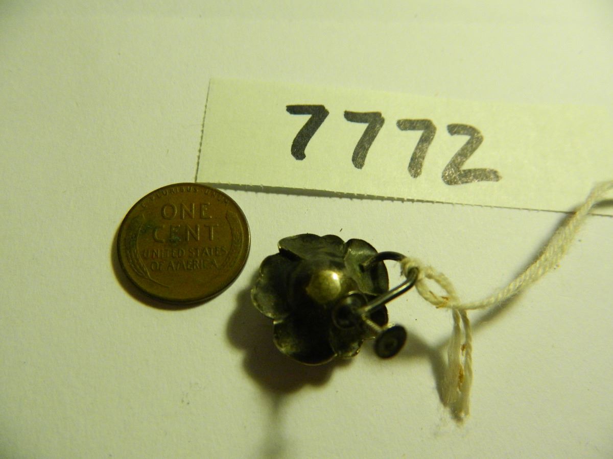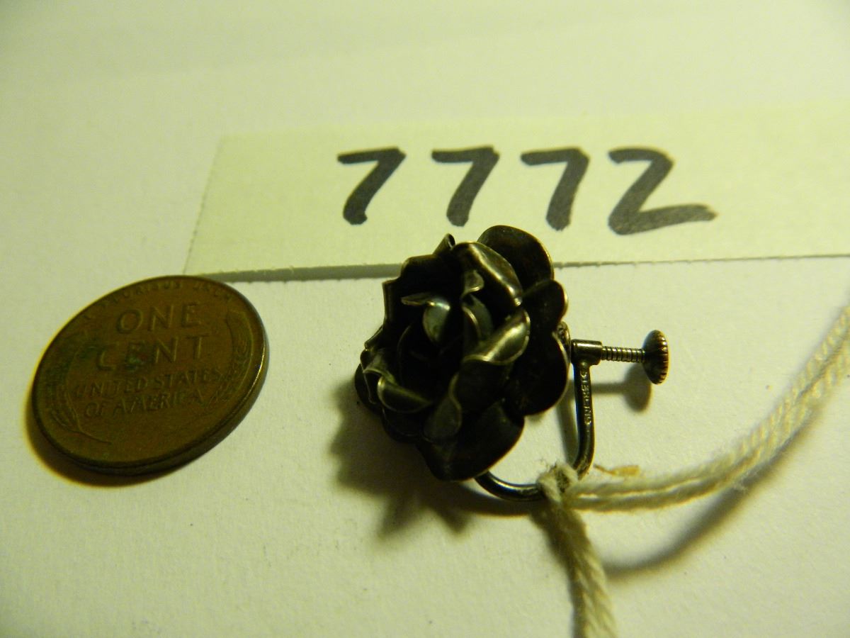 OLD Sterling Silver Ear Ring, Highly Detailed Rose. Vintage. One Only