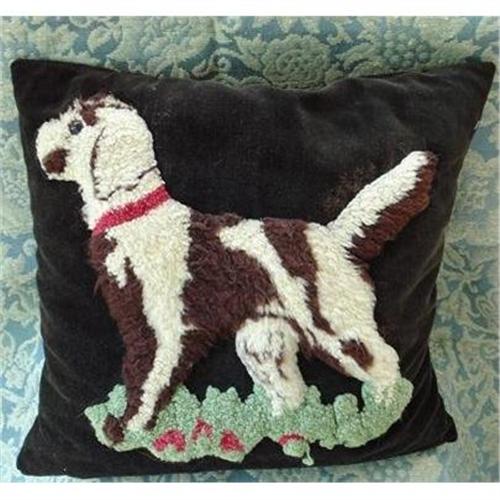 BEAUTIFUL VICTORIAN STYLE DECORATIVE PILLOW, ALL ORIGINAL,DEPICTING HANDSOME SHAGGY DOG WHITE AND BLACK AGAINST BLACK VELVET, THE DOG HAS A BUTTON EYE - as per images - Excellent used condition, with velvet showing age, but no holes or stains, Measuring about 15 1/2" x 15 1/2", US Buyer to pay 7.00 for shipping plus insurance.THANKS.