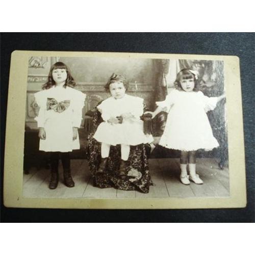 THIS OLD I THINK LATE VICTORIAN EARLY EDWARDIAN PHOTO, DEPICTING 3 VERY YOUNG AND VERY PRETTY GIRLS, EXCELLENT EXAMPLE OF VICTORIAN DRESSES, SHOES ETC.,(ON THE BACK OF THIS PHOTO THERE IS A NEWSPAPER CUT-OUT PICTURE OF A LADY WITH HUGE HAT, AND THE WRITING IN FRENCH,I WONDER IF SHE WAS MOTHER OF THESE GIRLS, I WILL LIST ORIGINAL PHOTOGRAPH, OF THAT NEWSPAPER CUT-OUT),PHOTO WITH LOVELY GIRLS MEASURES ABOUT 6 1/2 inch x 4 1/4 inch, US Buyer to pay 2.00 for shipping.THANKS.